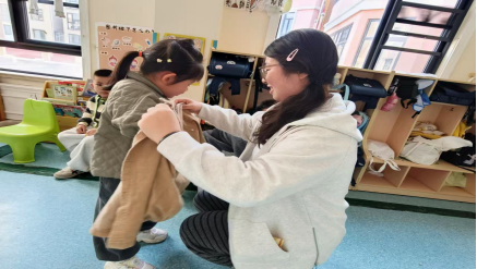 在游戏互动环节,学生志愿者结合托育专业技能,带领幼儿开展手指游戏、儿歌互动、简单保健抚触等趣味活动,在轻松氛围中锻炼幼儿肢体协调性与认知能力。同时,大家主动参与班级卫生清洁、玩具消毒、教具整理等工作,以认真负责的态度、规范细致的操作,获得幼儿园老师与家长的一致认可。
