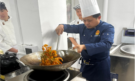 为深入贯彻职业教育高质量发展要求,落实“以赛促教、以赛促学、以赛促练”育人理念,进一步深化产教融合、校企协同育人,提升烹饪专业学生专业技能与职业素养,传承工匠精神,社会服务学院烹饪实训室内暖意融融、香气四溢。中国烹饪大师、中国赣菜大师、高级技师、餐饮高级厨政管理师、餐饮高级职业经理人,同时担任中国餐饮广东中膳餐饮服务有限公司江西区域项目经理的陈可海大师,受邀走进校园开展烹饪教学交流活动,为学院烹饪专业同学们带来了一堂兼具专业性与实用性的实操教学课。