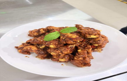 在“可乐鸡翅、红烧鸡腿”的制作教学中,陈可海大师充分展现出深厚的专业功底与丰富的行业经验。他结合自身从业经历,详细介绍了鸡翅、鸡腿的预处理方法,分享了让食材保持鲜嫩多汁的小窍门,从火候大小的动态调整到烹饪时间的精准把控,从调味的比例搭配到口味的微调技巧,都毫无保留地分享给在场同学们。课程接近尾声,同学们在陈可海大师的指导下,亲手完成了三道菜品的制作。看着自己精心烹制的成品,大家脸上都洋溢着收获的喜悦,纷纷展示自己的作品,交流实操心得。